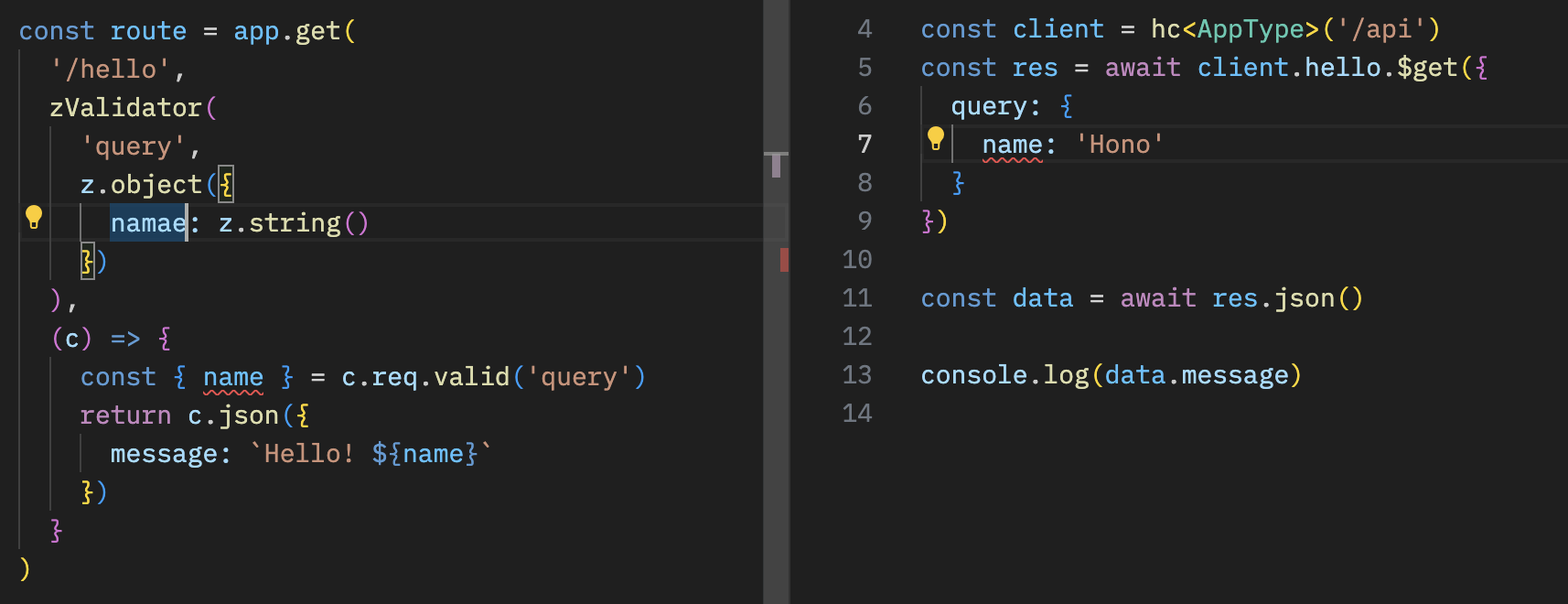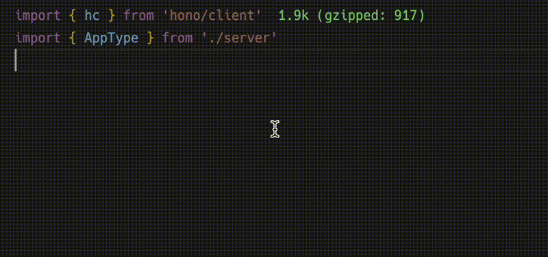 Hono 的 RPC 功能允许你在几乎不改动代码的情况下共享 API 规范。 hc 生成的客户端会读取这些规范,并以类型安全的方式访问端点。
